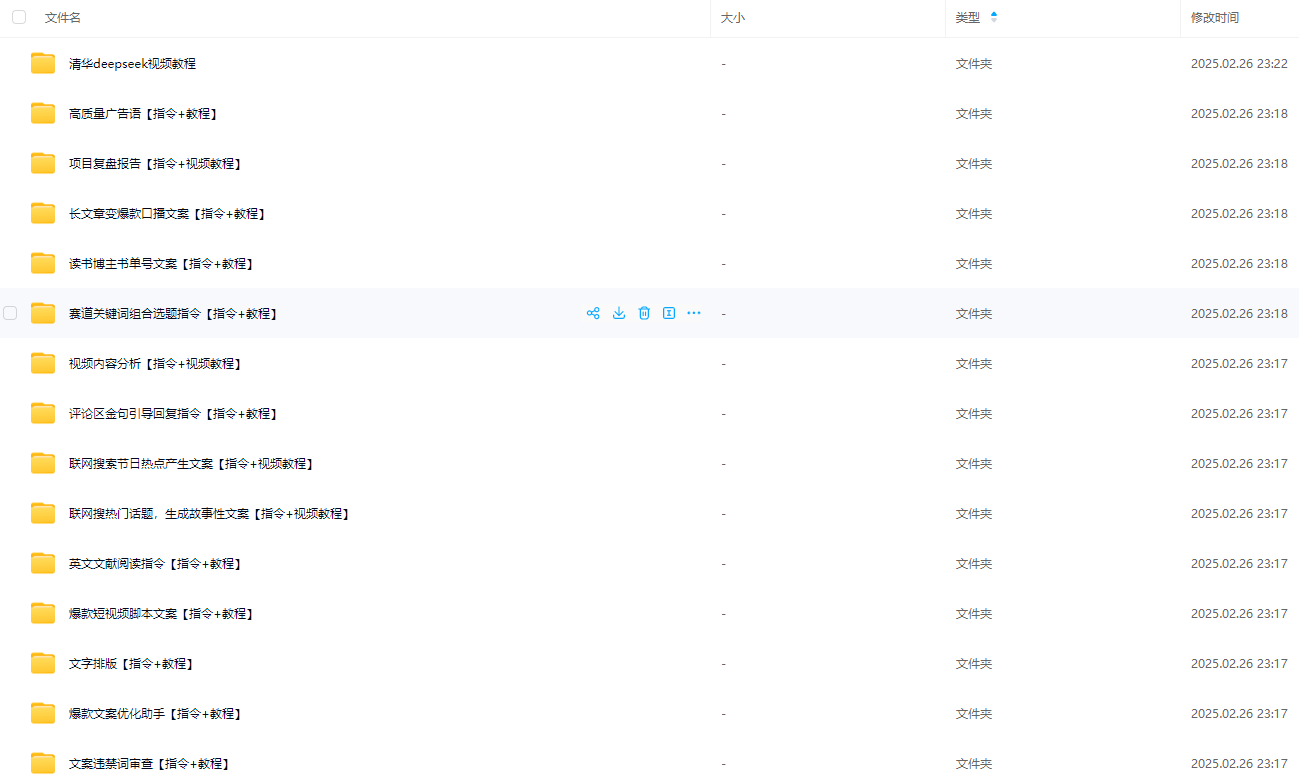 首页 - vip课程 - 正文 2025最新清华deepseekAI指令合集36G教程+视频及PDF完整打包 admin vip课程 2025年03月01日 1694 0 0 2025最新清华deepseekAI指令合集36G教程+视频及PDF完整打包资源下载您需要登录并升级VIP后才能查看此内容! ♥赞 0 分享: 扫描分享到社交APP 上一篇:deepseek教程合集2025全部163G打包下载 会员免费下载 下一篇:国产AI大模型deepseek保姆教程从入门到精通 本地部署使用教程视频word文档2025更新