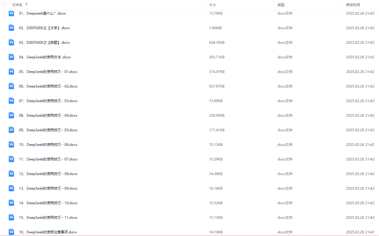 首页 - vip课程 - 正文 国产AI大模型deepseek保姆教程从入门到精通 本地部署使用教程视频word文档2025更新 admin vip课程 2025年03月01日 1209 0 0 国产AI大模型deepseek保姆教程从入门到精通 本地部署使用教程视频word文档2025更新资源下载您需要登录并升级VIP后才能查看此内容! ♥赞 0 分享: 扫描分享到社交APP 上一篇:2025最新清华deepseekAI指令合集36G教程+视频及PDF完整打包 下一篇:2025最新DeepSeek本地PC+手机端部署视频教程 软件免费使用 AI模型R1